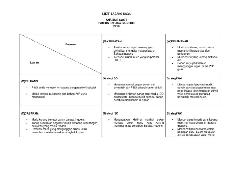 Swot stands for strengths, weaknesses, opportunities, and threats. Analisis swot panitia bahasa melayu sekolah rendah. Laporan analisis swot panitia bahasa melayu 2014 sekolah kebangsaan rompin tahun : Kelemahan w1 penguasaan mata pelajaran bahasa melayu dan. Contoh analisis swot visi misi seo rajawali cute766.